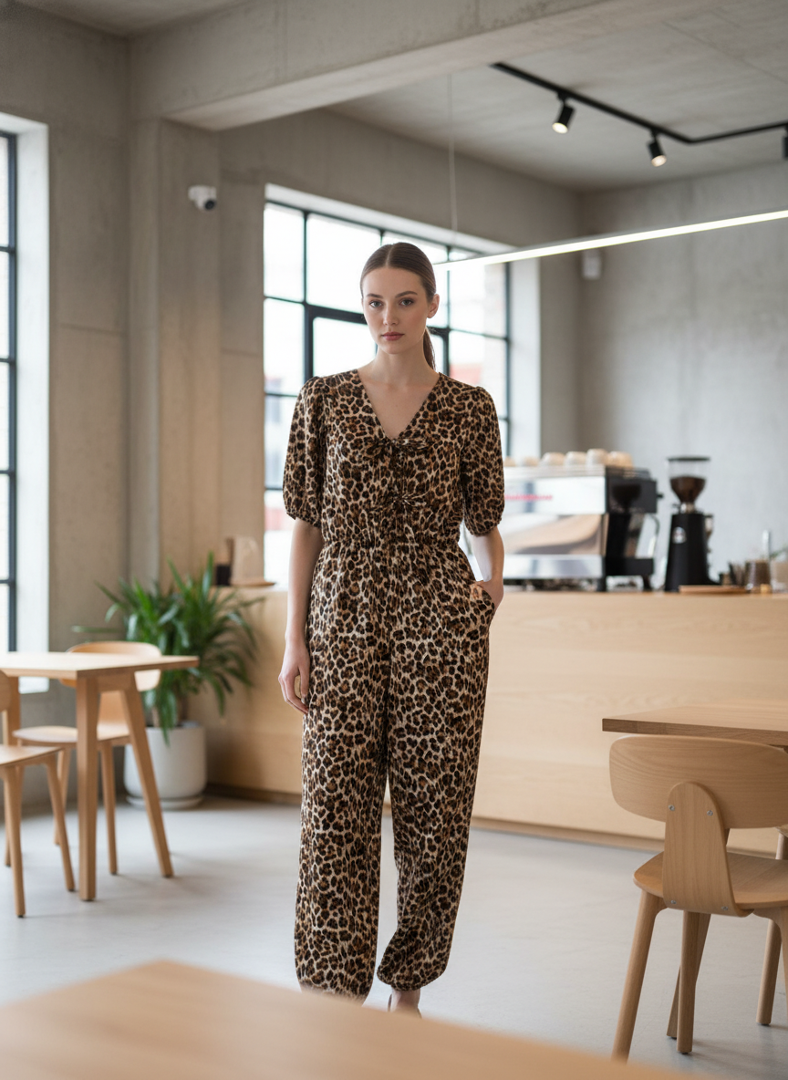 O Macacão Wild Chic é a peça perfeita para quem quer marcar presença com estilo e atitude. Com padrão animal print intemporal, este macacão combina elegância e ousadia na medida certa.
